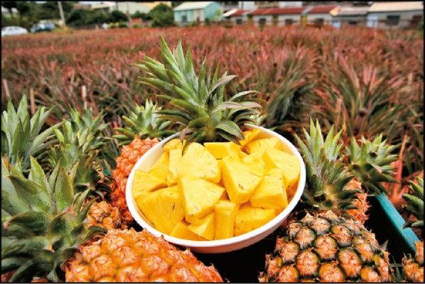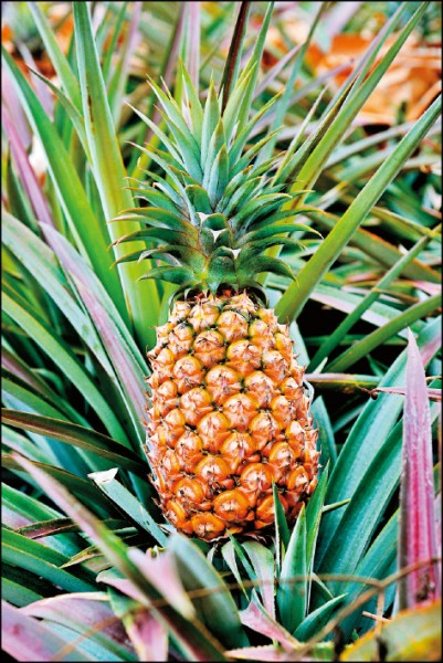 一般鳳梨外皮轉黃時,果肉大都已近乎過熟,但綠冠的鳳梨反而此時風味最佳,果肉紮實還保有酸度。(記者許麗娟/攝影)
