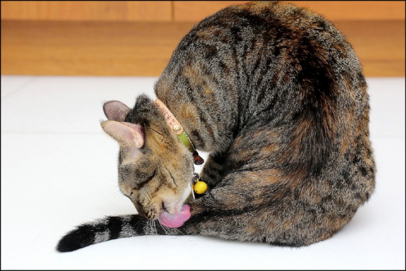 愛乾淨的貓咪,每天花費不少時間在理毛!(記者李惠洲/攝影)