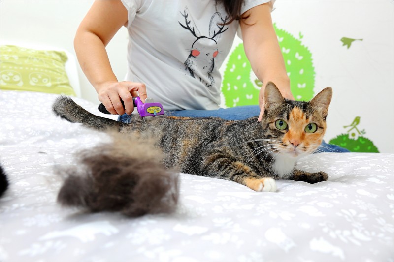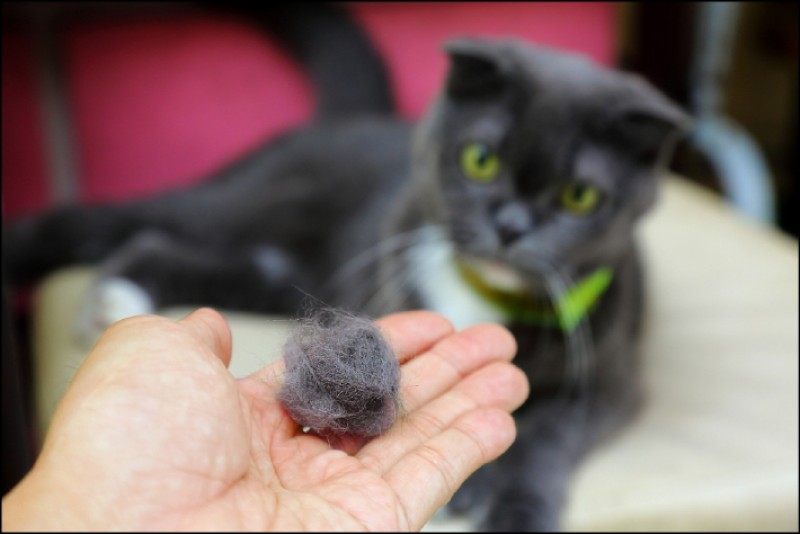 許嘉展表示,當貓咪吞入廢毛累積過多時,會伴隨嘔吐將毛吐出來,有些則會跟著排泄排出體外,但並非每隻貓咪都會吐毛球;絕大多數貓飼料或罐頭等貓食,都會添加增進腸胃蠕動、幫助消化的成分,飼主也可額外適度餵食礦物油、貓草或化毛膏、化毛粉來幫助貓咪消化;貓咪換毛時也別忘了每天增加梳毛的次數,讓貓咪多喝水也能提高身體代謝。