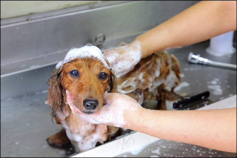 毛孩可能對洗毛精成分過敏,飼主應多加留意,避免越洗皮膚病越嚴重!(記者李惠洲/攝影)