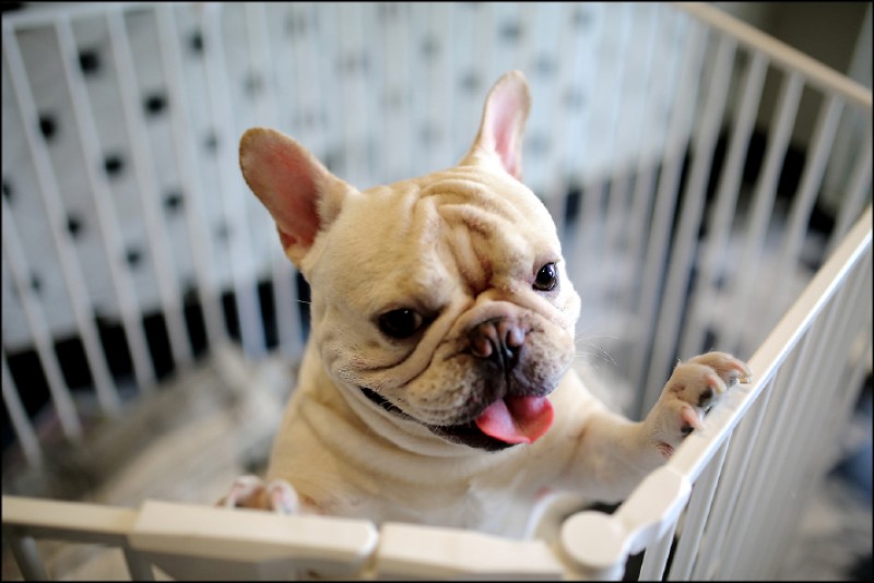 法國鬥牛犬因先天基因遺傳因素,大多是皮膚過敏體質。(記者李惠洲/攝影)