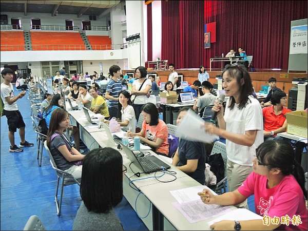 免試入學主辦單位在永平高中演練報名過程。(記者翁聿煌攝)
