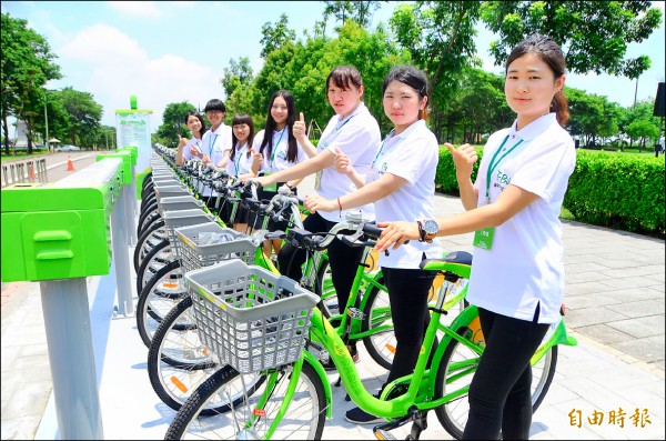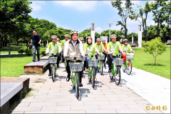 初步建置兩百八十輛的T-Bike,昨天在奇美博物館前舉行啟用典禮,市長賴清德等各界貴賓熱鬧剪綵,隨後帶領車隊愜意地遊賞都會公園,宣示新的在地交通工具正式上路。