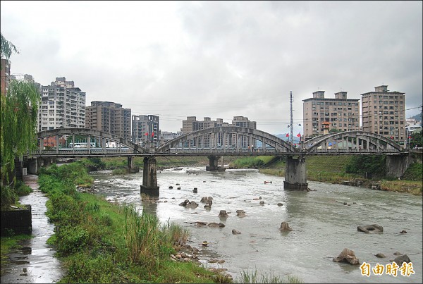 三峽拱橋受蘇拉颱風侵襲,造成橋墩下沉、錯移,市府辦理橋墩補強工程後,至今橋上仍有小裂縫,明年將斥資兩千萬元修復。(記者張安蕎攝)