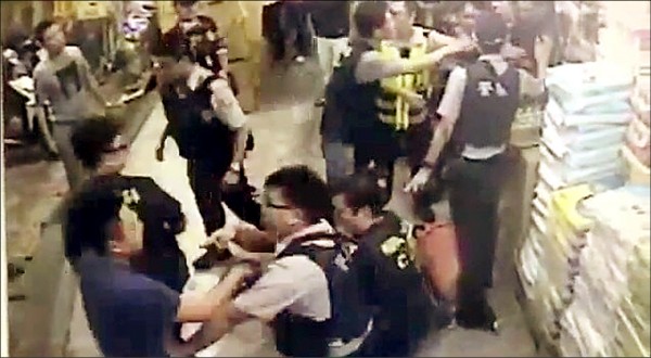 中壢街頭出現民眾聚眾滋事,警方出動快打部隊壓制逮人。(記者李容萍翻攝)
