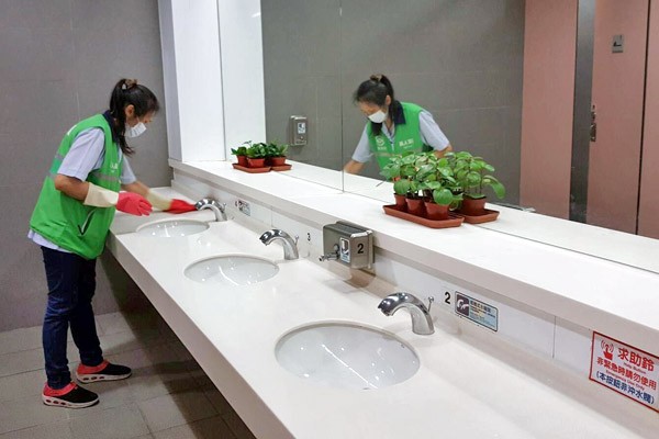 台北捷運公司松江南京站,清潔人員定時巡檢,力保廁所「不髒、不臭」。(台北捷運公司提供)
