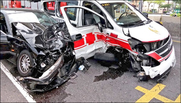 十五日上午,保西分隊救護車搭載車禍受傷的老翁就醫時,行經仁德、歸仁交界處的台三十九線與一八二線路口,遭BMW側撞,還波及另一部轎車,四人受傷送醫,所幸都無大礙,但因撞擊力道大,救護車與BMW都嚴重毀損,怵目驚心。