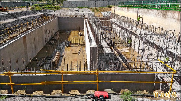 施工中的鳳山溪再生水廠,將於八月啟用,每天可產出二萬五千噸的回收水。(記者蔡清華攝)