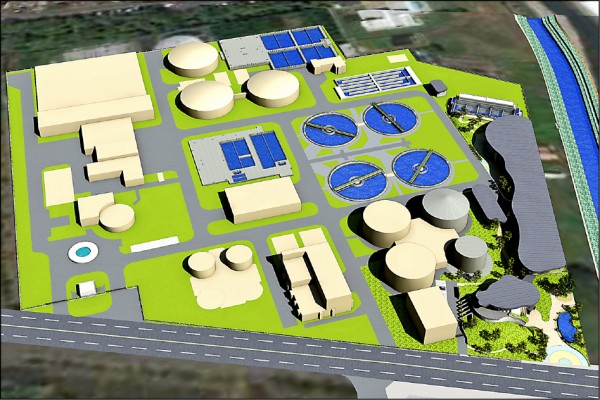 鳳山溪再生水廠模型圖。 (記者蔡清華翻攝)