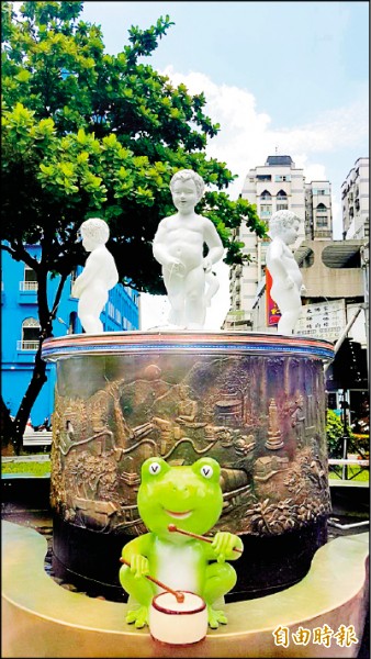 東門圓環改建啟用,「尿尿小童」結合管樂諸羅樹蛙等新的意象。(記者丁偉杰攝)