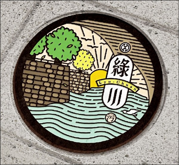 綠川視覺識別系統保留昔日小京都的氛圍,將率先運用於綠川周邊的人孔蓋。 (水利局提供)