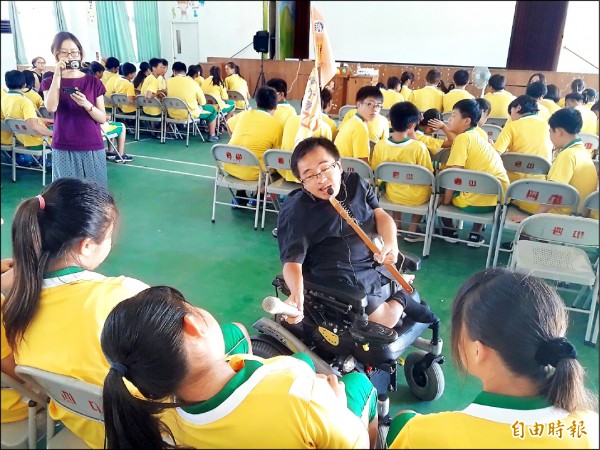 因為「雞胸」,陳彥廷中氣不足無法大聲說話,但從小朋友專注聽講、勇於發問,讓他增添許多信心,渾身解數講好每一場,勇敢堅持、努力、抓住目標,不錯過任何興趣去體驗,六日起將到日本學習自立生活廿天,期待回國後,分享及推廣給更多身心障礙朋友,鼓勵大家走出家門與世界接軌。