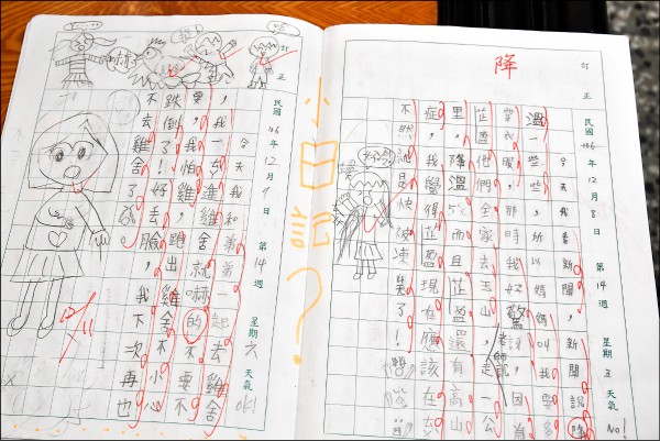 全校學童每天寫日記,校長王瓊慈天天批閱與孩子交心。(記者黃淑莉攝)