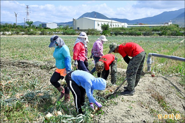阿兵哥助收洋蔥 蔥農:多負責搬運