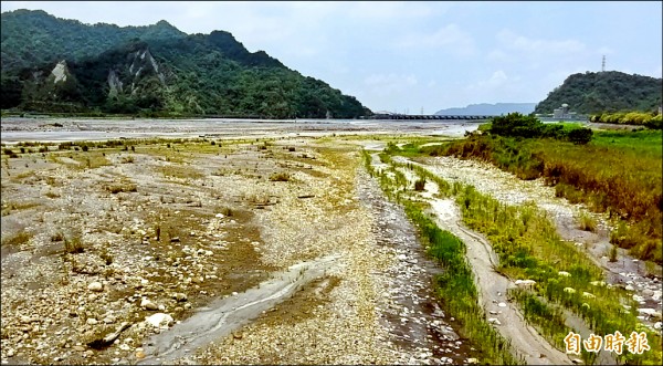 久旱未雨,濁水溪部分河床嚴重裸露,呈現荒漠沙洲景象。(記者謝介裕攝)