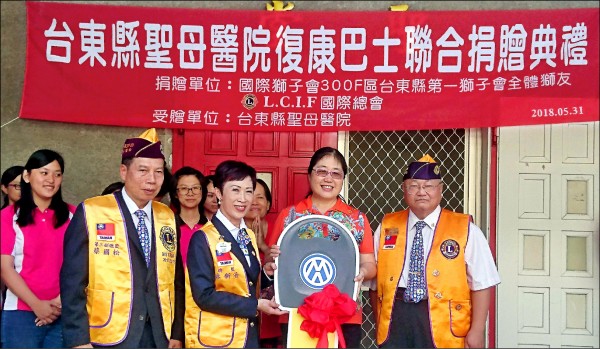 國際獅子會300F區台東縣第一獅子會捐贈復康巴士給台東聖母醫院。(台東聖母醫院提供)