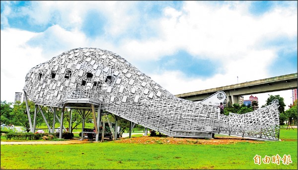 「桃機一號」是桃園地景藝術節的亮點大型裝置藝術作品之一,由於地方看法兩極,市府文化局決定開放民眾i-Voting決定去留。(記者李容萍攝)