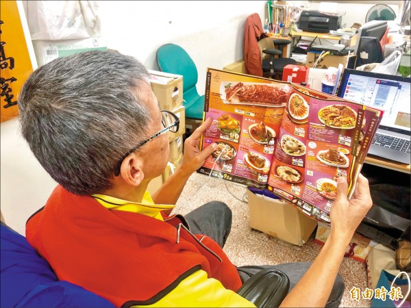 有消費者申訴,送到家的年菜,和圖片差很大,氣得找上消保官。圖為男子參考年菜DM畫面,與文中案例無關。(記者魏瑾筠攝)