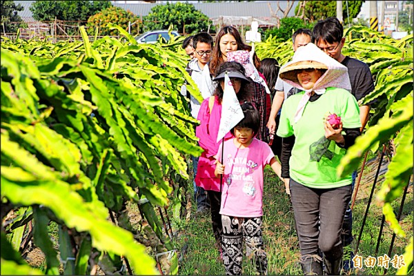 鹿草一日輕旅行可預約參觀紅龍果園。(記者林宜樟攝)
