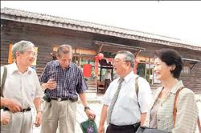 兩人參觀竹田驛站及池上一郎文庫,和地方人士相談甚歡。(記者郭靜慧攝)