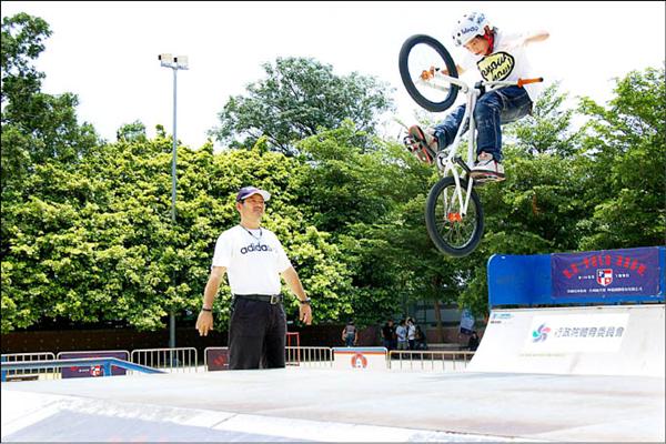 劉全銘小小年紀單車極限運動技術了得,排名全國第七。<br>(記者蔡文居攝)