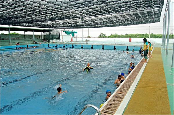 萬丹公立游泳池外觀氣派,生意卻是門可羅雀,游泳水質及設備飽受批評,到泳池上課的學生越來越少。(記者李立法攝)
