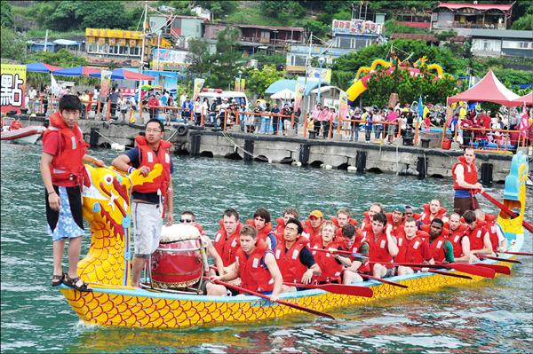 基隆端午龍舟賽昨天在碧砂漁港舉行決賽,遠來作客的忠僕號外籍船員初試啼聲,新手的手氣還不錯,贏了第1場、輸了第2場。