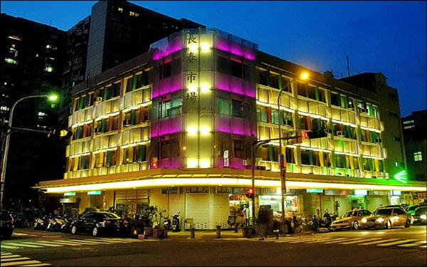 擁有34年歷史的台北市長春市場,耗資2124萬元重新拉皮整修,外牆增加夜間照明,外觀煥然一新。(台北市場處提供)