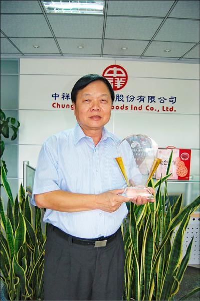 中祥食品李金水40年堅持不裁員,獲得桃園縣政府頒發的長青企業。