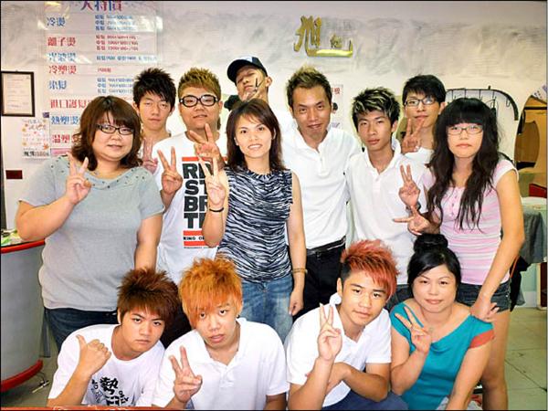 經營旭紅美髮理髮店的田淑萍、范開棟夫婦(中),20年來僱用母校學弟妹,讓不愛念書的少年個個變成優秀的髮型設計師。(記者廖雪茹攝)