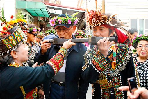 前菲律賓總統羅慕斯昨天走訪屏東縣三地門,與頭目喝連杯酒,同時走訪石板屋,更與妻女玩山地的鞦韆,他說,台灣原住民與菲國北部的部落文化或語言接近,都是美好人間天堂。