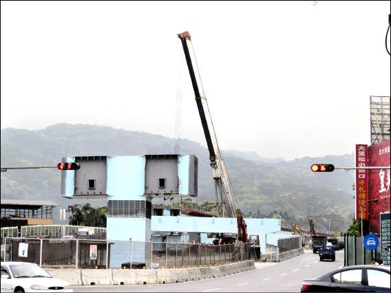 新北市土城區因特二號道路吊梁工程,將於特定時段封閉中央路三段及大安路部份路段,屆時恐面臨一段交通黑暗期。(記者謝佳君攝)