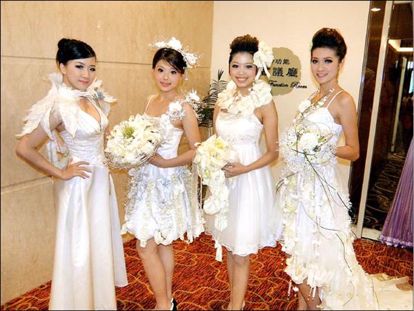 昨天上午,中華花藝設計協會台南分會召開第九屆第三次會員大會,會中展出會員們靜態插花作品、捧花秀與李嘉偉、周盟貿、鄭秀煒、謝志倫、賴佳壕、孫曼潞六位花藝老師為女模特兒精心設計的人體花卉裝置藝術,各式花材攀附女模身上,吸引賓客目光、猛按快門。