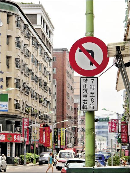 禁止左轉還是禁止右轉?用路人傻傻分不清楚。號誌牌上畫的明明是禁止左轉,怎麼說明事項卻寫著「七時至八時禁止汽車右轉」?