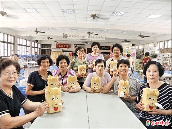 「三隻小豬」夯,七股龍山社區媽媽DIY創意小豬面紙盒,有媽媽說要當撲滿存錢助小英。(記者劉婉君攝)
