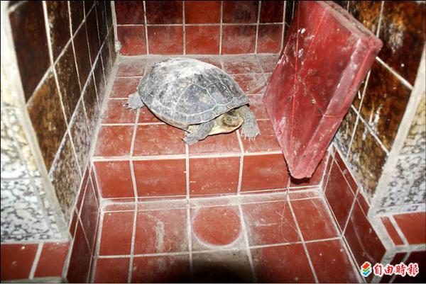 一隻大烏龜在玄天上帝壽誕期間突然造訪,信眾視為神蹟。(記者黃佳琳攝)