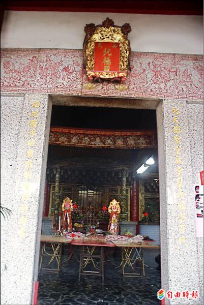 奉祀玄天上帝的旗山區真武北極殿,傳出烏龜佔據虎爺神位,廟方連擲出八個聖筊,得知烏龜是來拜壽。(記者黃佳琳攝)