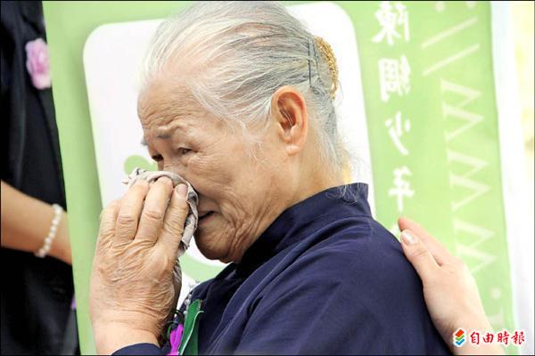 陳綢少年家園終於落成啟用,陳綢阿嬤數度感動落淚,並以雙手合十感謝政府與社會各界的協助。(記者佟振國攝)