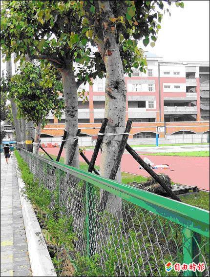 大龍國小圍牆整建工程,新蓋的圍牆只有半人高,家長擔心校園安全可能出問題。(記者劉榮攝)