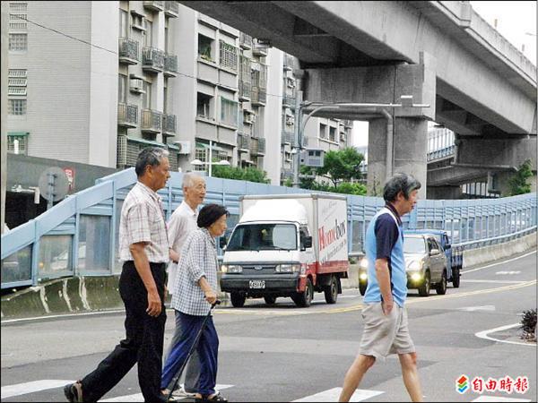 新竹市武陵路六十一巷口與東大路高架橋出口處的路口,因老人家過馬路多,常有車輛違規綠燈右轉或闖紅燈,撞到人。(記者洪美秀攝)