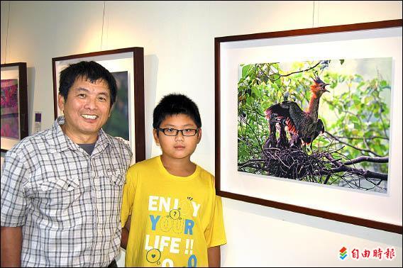 十二歲的許喻豪小四開始跟著爸爸許釗滂拍攝鳥類生態,父子倆聯合舉辦攝影展。(記者劉婉君攝)