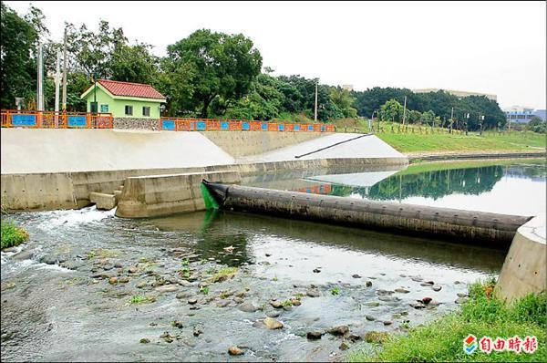 「康橋計畫」設計有魚梯(左)、可升降充氣的橡皮壩(右),歡迎民眾前來休憩。(記者陳建志攝)