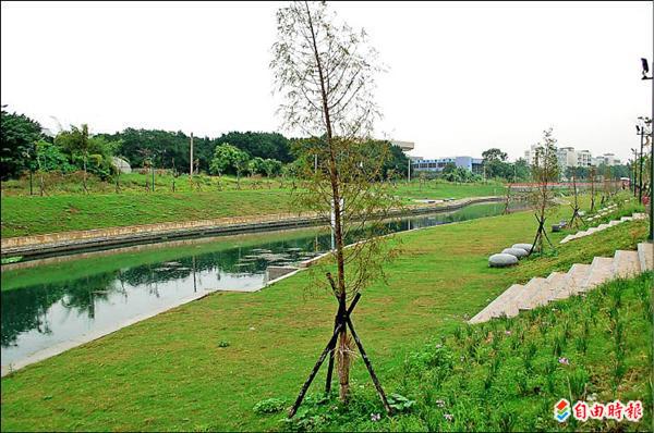 水利署第三河川局進行旱溪排水改善,國光橋和積善橋間環境優美,彷彿「康河再現」。(記者陳建志攝)