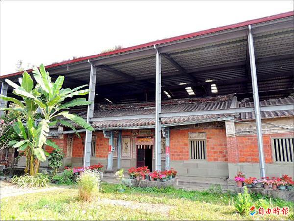 大甲頂店梁宅,後代子孫為免其繼續傾圮,利用鋼構屋頂加以保護。(記者歐素美攝)