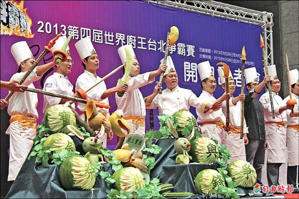第四屆世界廚王台北爭霸賽六月將在台北世貿一館舉行,總獎金一百三十六萬元,創下全台廚藝競賽最高獎金。賽事首度結合世貿「台灣國際飯店暨餐飲設備用品展」,台北市餐飲業職業工會理事長林金城表示,希望結合觀光、美食推動台灣多元廚藝。
