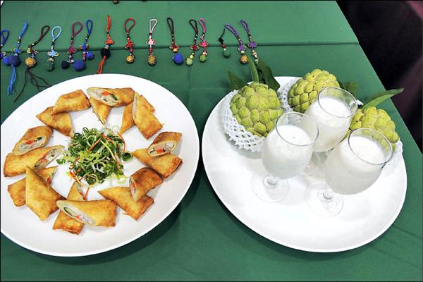 華源家政班研發釋迦料理及乾果飾品。(記者張存薇攝)