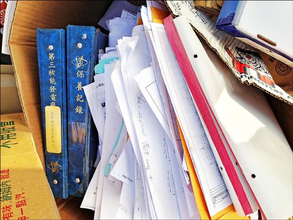 民眾在回收場發現整箱核三廠文件,整個完整卷宗夾丟棄。(記者蔡宗憲翻攝)