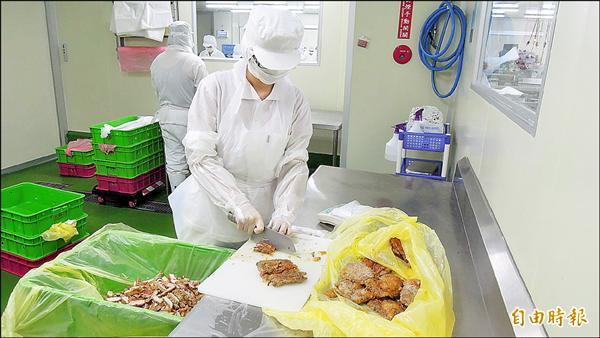 患有中度心智障礙的小依工作認真,領班大膽起用她擔任熟食組截切工。(記者蘇金鳳攝)
