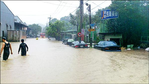 中和區位於北二高橋下的員山路與圓通路口,昨天下午也出現積水災情,水深最深時達四十餘公分,有一輛自小客車在水中拋錨,積水災情隨著雨勢漸緩而退去,副區長李宗漢說,當地地勢低漥,豪雨時不易宣洩,較易淹水,市府已研議拓寬當地排水幹管加強疏導洪水。