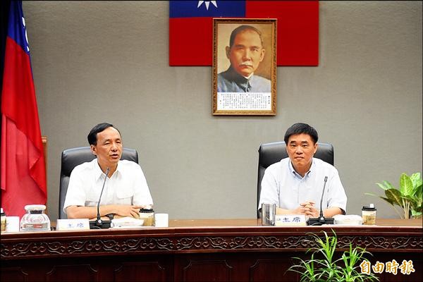 台北市長郝龍斌(右)昨與新北市長朱立倫(左)共同主持大台北黃金雙子城第三次委員會議。(記者蔡亞樺攝)